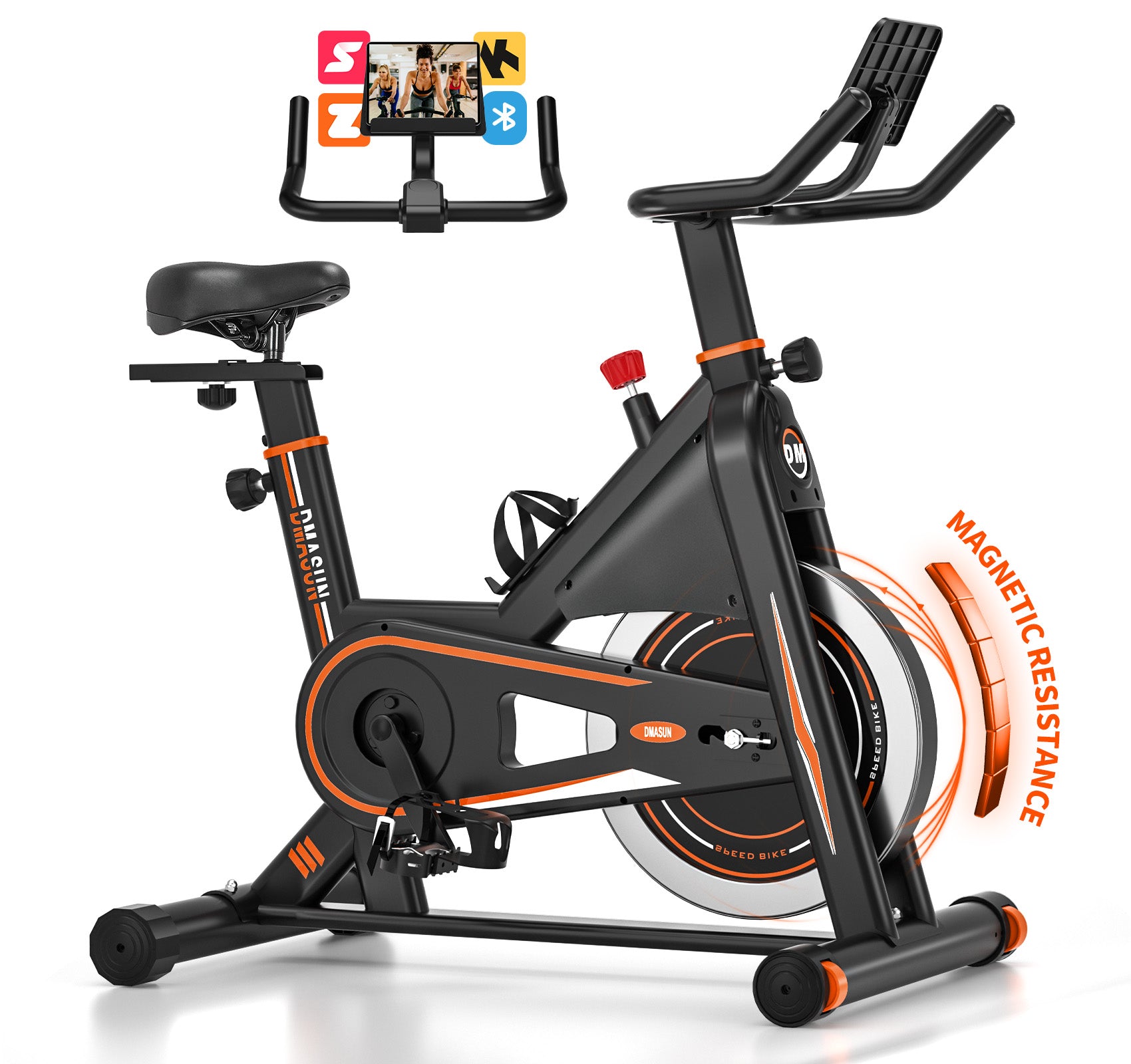 Exercise Bike, DMASUN Silent Magnetic Resistance 350 LB Capacity Stationary Bike for Home, App Compatible, Workout Bike with Solid Flywheel and Tablet Holder