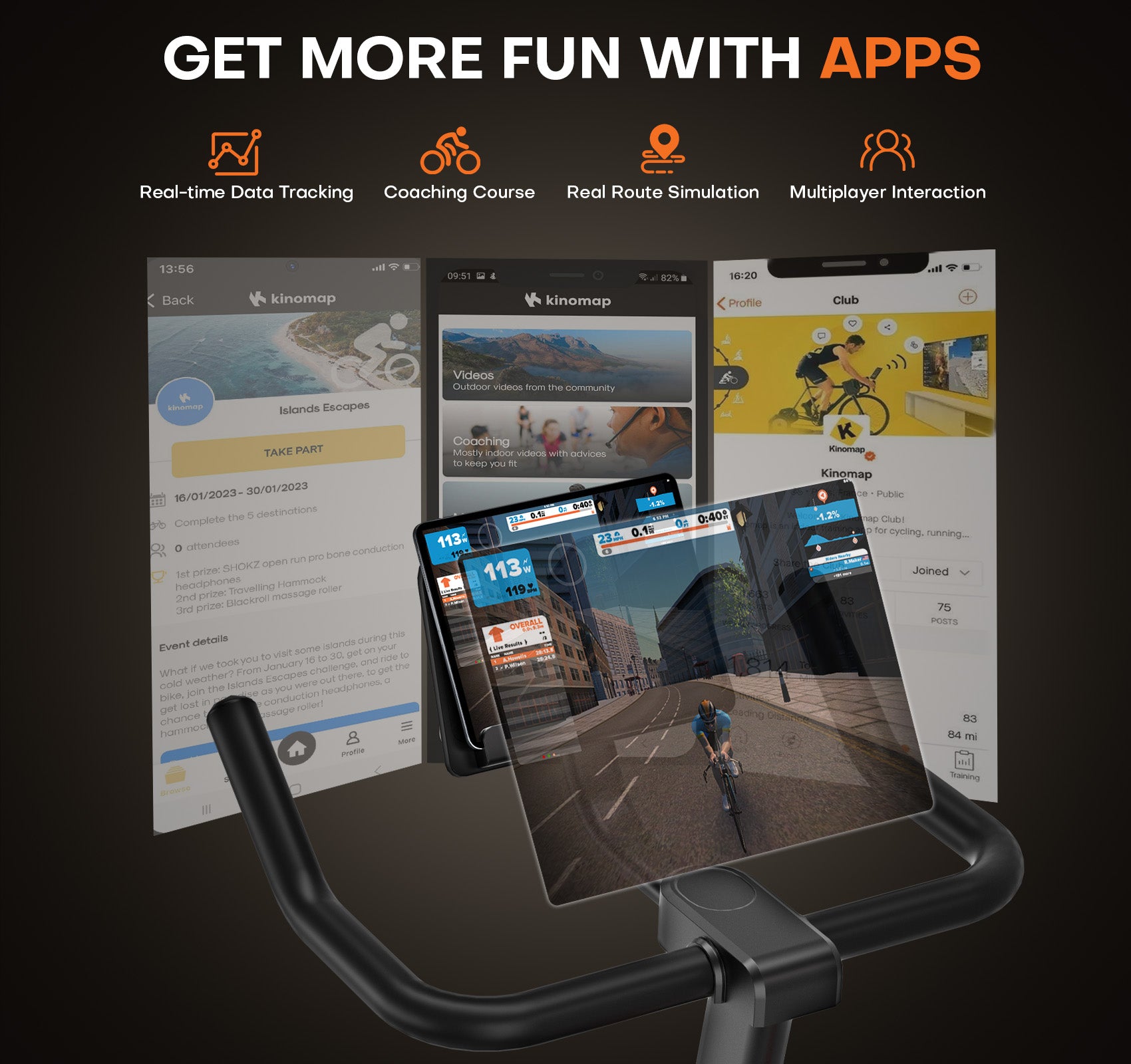 - APP TAILORED TRAINING PLANS: DMASUN's new upgraded version of the indoor bike can be connected to the APP such as Kinomap and Zwift for virtual training, racing, and challenges. Making it easy for you to track your progress with real-time metrics such as distance, time, calories, average BPM, and more. Provide the best experience for cycling enthusiasts (Attention: without LCD display).
